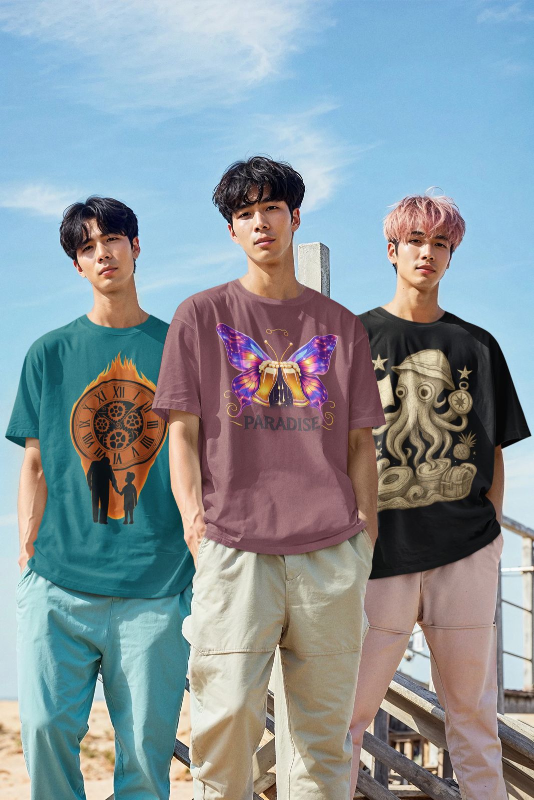 MEN'S OVERSIZED BUTTERFLY BEER THEME T SHIRT